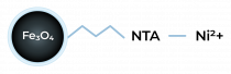 BOINEER’s Ni-NTAMagnetic Beads are coated with high-density of Nickel-nitrilotriacetic acid (Ni-NTA) on the surface of Silica Magnetic Beads. Histidine residues in the His tag have a strong affinity for nickel ions, and Nitrilotriacetic acid (amino-polycarboxylic acid, N(CH2CO2H)3) works as a chelating agent. Ni-NTA Magnetic beads can purify 6x His-tagged proteins. Using the MagListo™ Magnetic Separation Rack (TM-1000, TM-1010, TM-1011, TM-1020, TM-1030) or other magnetic separation racks, biomolecules attached to the beads can be easily purified by magnetic force.