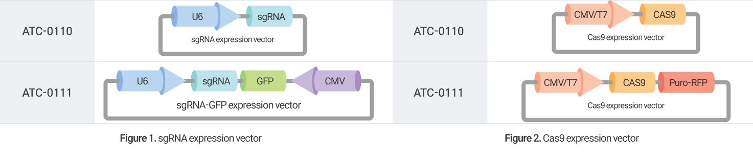 - Either pRGEN-Cas9-CMV/T7(ATC-0110) or pRGEN-Cas9-CMV/T7 Puro RFP(ATC-0111) vector is provided in the plasmid form. (Figure 2)
